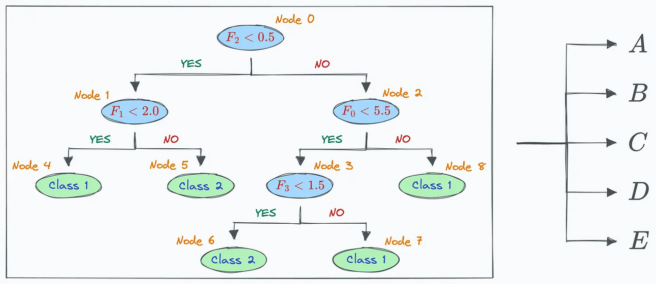Inference using a decision tree is an iterative process. We traverse a decision tree by evaluating the condition at a specific node in a layer until we reach a leaf node. Today, let me show you a superb technique that allows us to represent inferences from a decision tree in the form of matrix operations.