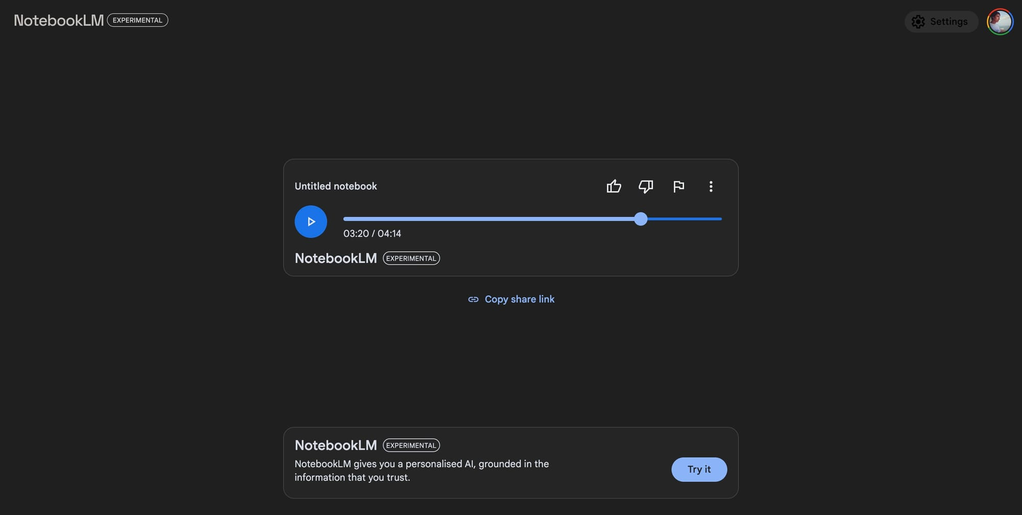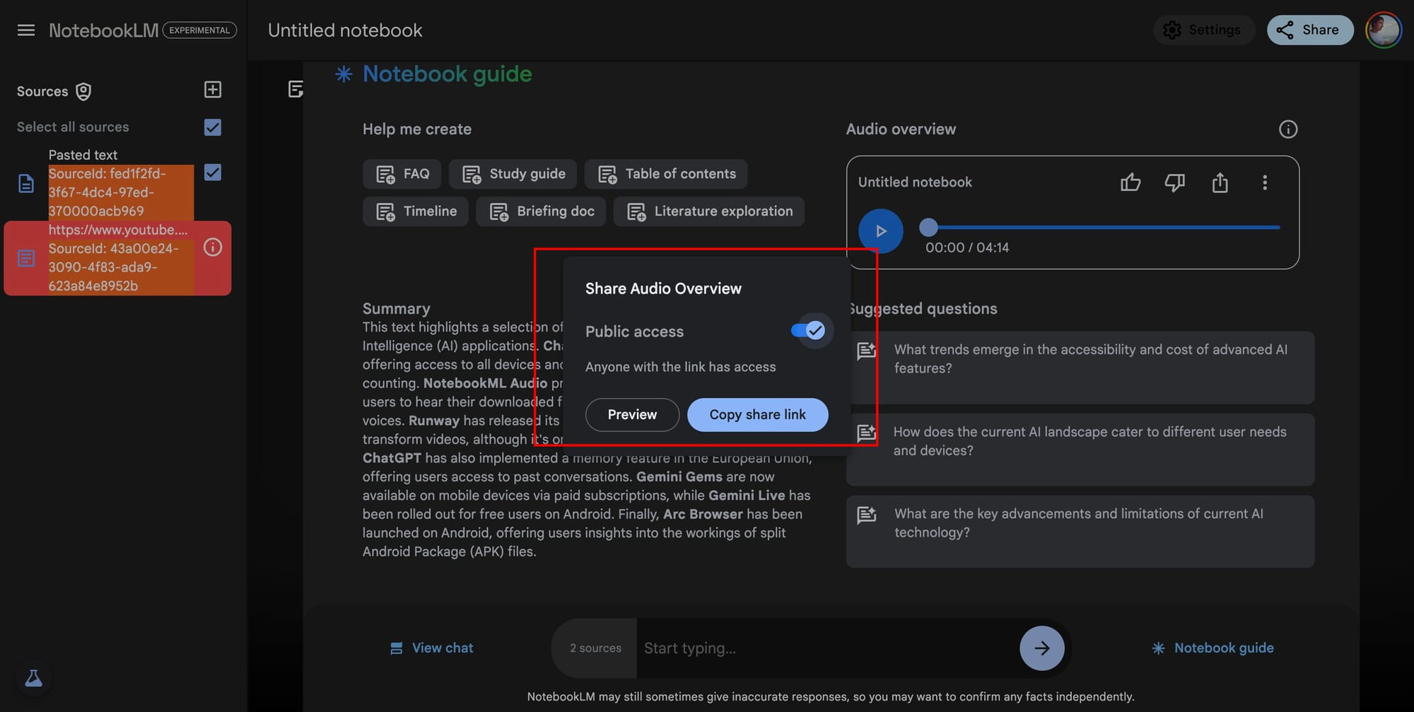 Future Developments: The new sharing feature is particularly beneficial for creating AI-generated audio content. It would be cool if in the future it will be possible to generate audio overviews in a video form with waves.